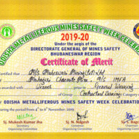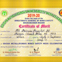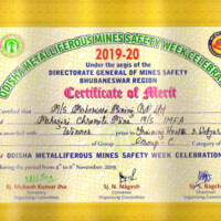 - For two Consecutive years 2021 & 2022 we have received First Prize in Group-C for Overall Performance, General Working, Maintenance, Safety & Compliance, Training Health & Welfare, Covid-19 Precautions, at “ODISHA METALLIFEROUS MINE SAFETY WEEK”.